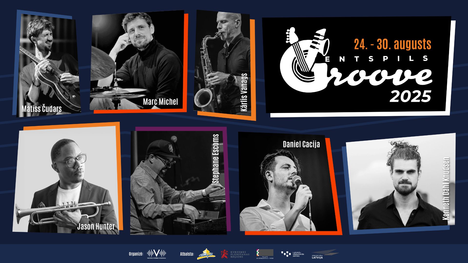 Festivālu "Ventspils Groove 2025" atbalsta Ventspils Valstspilsētas pašvaldības dome, Kurzemes plānošanas reģions, Valsts kultūrkapitāla fonds, Latviešu vēsturiskās zemes, Ventspils brīvosta, restorāns “Meisons Ventspils”, kultūrvieta-kafejnīca “VIETA, KUR būt”.
